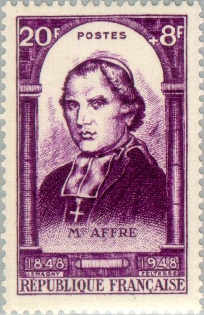Visibility: public Image owner: none semipostal 4/5/1948 20+8fr vio issue=100th Anniversary of the French Revolution of 1848 d=Monseigneur Affre 1793-1848 unwmk perf=13 Crops No visible images cropped from this one. Measurements Resolution is unknown. Source Source name: Colnect File URL: http://i.colnect.net/b/143/662/Monseigneur-Affre-1793-1848.jpg Uploaded August 16, 2014, 8:39 pm by Stan Shebs |