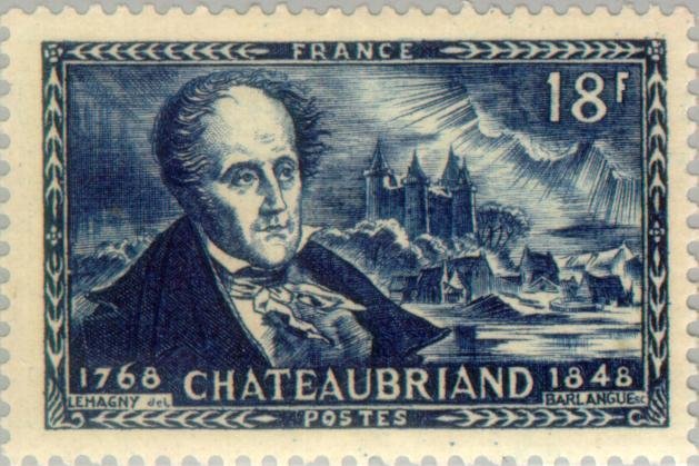 Visibility: public Image owner: none postage 7/3/1948 18fr dkbl d=Chateaubriand unwmk perf=13 Crops No visible images cropped from this one. Measurements Resolution is unknown. Source Source name: Colnect File URL: http://i.colnect.net/b/143/672/François-René-de-Chateaubriand-1768-1848.jpg Uploaded August 16, 2014, 8:39 pm by Stan Shebs |