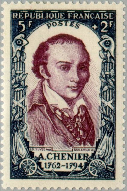 Visibility: public Image owner: none semipostal 7/10/1950 5+2fr blblk&brnvio dt=figures of the Revolution d=Andre Chenier unwmk perf=13 Crops No visible images cropped from this one. Measurements Resolution is unknown. Source Source name: Colnect File URL: http://i.colnect.net/b/143/743/Revolution-of-1789-Andre-Chenier-1762-1794.jpg Uploaded August 16, 2014, 8:46 pm by Stan Shebs |