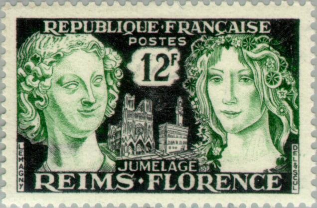 Visibility: public Image owner: none postage 5/5/1956 12fr blk&grn d=Reims&Florence unwmk perf=13 Crops No visible images cropped from this one. Measurements Resolution is unknown. Source Source name: Colnect File URL: http://i.colnect.net/images/b/143/974/Florence-Reims-Twinning.jpg Uploaded August 16, 2014, 9:08 pm by Stan Shebs |