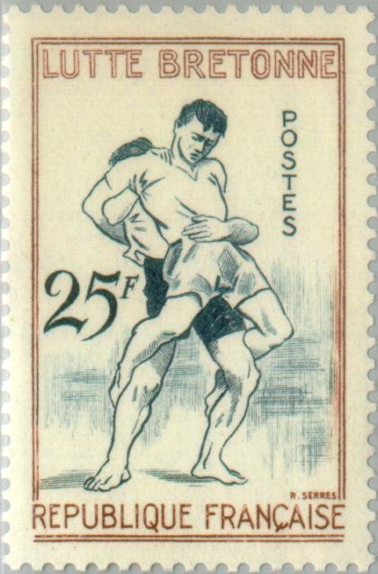 Visibility: public Image owner: none postage 4/26/1958 25fr brn&dkbl dt=sports (1958 France) d=Breton wrestling unwmk perf=13 Crops No visible images cropped from this one. Measurements Resolution is unknown. Source Source name: Colnect File URL: http://i.colnect.net/images/b/144/109/Breton-wrestling.jpg Uploaded August 17, 2014, 6:30 am by Stan Shebs |