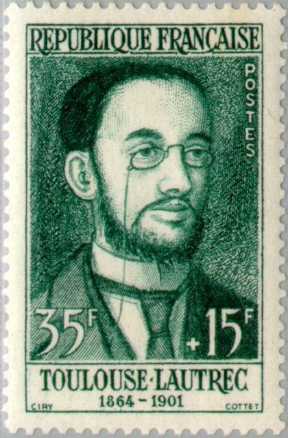 Visibility: public Image owner: none semipostal 6/7/1958 35+15fr blgrn issue=1958 semi dt=Famous Frenchmen (1956) d=Toulouse-Lautrec (1958) unwmk perf=13 Crops No visible images cropped from this one. Measurements Resolution is unknown. Source Source name: Colnect File URL: http://i.colnect.net/images/b/144/117/Toulouse-Lautrec-1864-1901.jpg Uploaded August 17, 2014, 6:30 am by Stan Shebs |