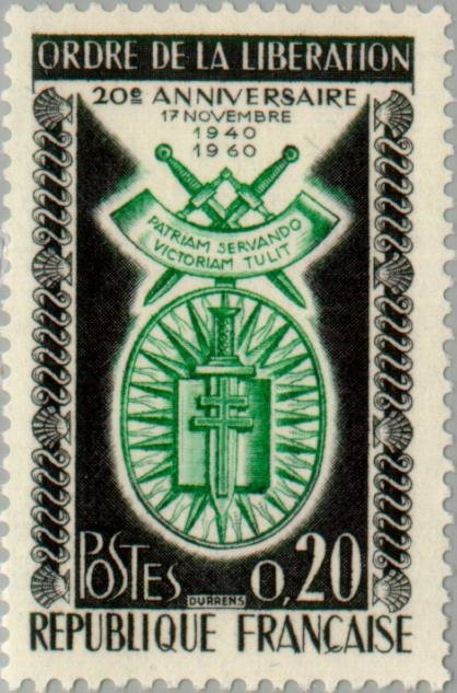 Visibility: public Image owner: none postage 11/14/1960 0,20(fr) issue=Order of Liberation 20th unwmk perf=13 Crops No visible images cropped from this one. Measurements Resolution is unknown. Source Source name: Colnect File URL: http://i.colnect.net/b/144/251/Order-of-the-Liberation-20th-anniversary-November-17-1940.jpg Uploaded August 17, 2014, 6:32 am by Stan Shebs |