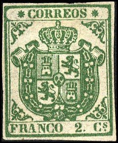 Visibility: public Image owner: none postage 2c grn issue=1854a d=arms Spain unwmk imperf Crops No visible images cropped from this one. Measurements Resolution is unknown. Source Source name: Colnect File URL: http://i.colnect.net/b/498/421/Coat-of-Arms.jpg Uploaded September 10, 2012, 6:17 am by Stan Shebs |