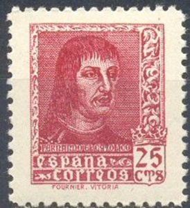 Visibility: public Image owner: none postage 25c lake issue=1938 Ferdinand d=Ferdinand the Catholic (1938) unwmk perf=14 Crops No visible images cropped from this one. Measurements Resolution is unknown. Source Source name: Colnect (old) File URL: http://i.colnect.net/images/f/1085/473/King-Ferdinand-II-the-Catolic.jpg Uploaded September 10, 2012, 7:03 pm by Stan Shebs |
