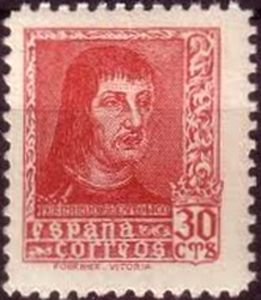 Visibility: public Image owner: none postage 30c red issue=1938 Ferdinand d=Ferdinand the Catholic (1938) unwmk perf=14 Crops No visible images cropped from this one. Measurements Resolution is unknown. Source Source name: Colnect (old) File URL: http://i.colnect.net/images/f/790/721/Ferdinand-the-Catholic.jpg Uploaded September 10, 2012, 7:03 pm by Stan Shebs |