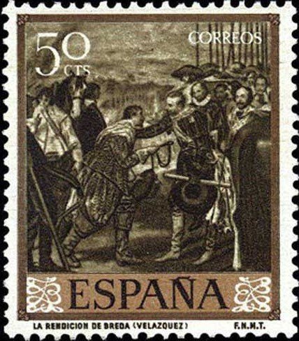 Visibility: public Image owner: none postage 3/24/1959 50c brnol&gld issue=Stamp Day 1959 dt=Velazquez paintings d=The Surrender of Breda by Diego Velázquez unwmk perf=14 Crops No visible images cropped from this one. Measurements Resolution is unknown. Source Source name: Colnect File URL: http://i.colnect.net/b/579/683/-The-Surrender-of-Breda--by-Diego-Velázquez.jpg Uploaded September 10, 2012, 11:38 pm by Stan Shebs |