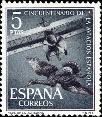 Visibility: public Image owner: none postage 12/11/1961 5p issue=Spanish aviation 50th d=plane hunting bustard unwmk perf=14 Crops No visible images cropped from this one. Measurements Resolution is unknown. Source Source name: Colnect File URL: http://i.colnect.net/b/602/935/50th-Anniversary-of-Spanish-Aviation.jpg Uploaded September 10, 2012, 11:58 pm by Stan Shebs |