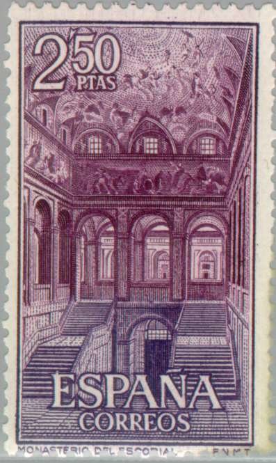 Visibility: public Image owner: none postage 10/31/1961 2.50p vio&blvio dt=views of Escorial d=staircase unwmk perf=14 Crops No visible images cropped from this one. Measurements Resolution is unknown. Source Source name: Colnect File URL: http://i.colnect.net/b/170/299/Monastery-of-San-Lorenzo-de-El-Escorial.jpg Uploaded September 10, 2012, 11:58 pm by Stan Shebs |