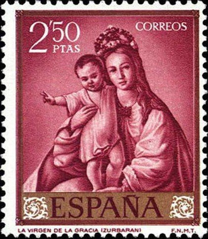 Visibility: public Image owner: none postage 3/24/1962 2.50p redbrn issue=Stamp Day 1962 dt=Zurbaran paintings d=La Virgen de la Gracia unwmk perf=14 Crops No visible images cropped from this one. Measurements Resolution is unknown. Source Source name: Colnect File URL: http://i.colnect.net/b/597/589/-Madonna-of-the-Grace-.jpg Uploaded September 11, 2012, 12:16 am by Stan Shebs |