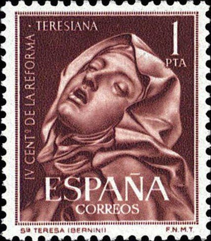 Visibility: public Image owner: none postage 4/10/1962 1p redbrn issue=Theresian reform 400th d=St Theresa by Bernini unwmk perf=14 Crops No visible images cropped from this one. Measurements Resolution is unknown. Source Source name: Colnect File URL: http://i.colnect.net/b/604/262/Teresian-Reformation-by-G-Bernini-1598-1680.jpg Uploaded September 11, 2012, 12:17 am by Stan Shebs |