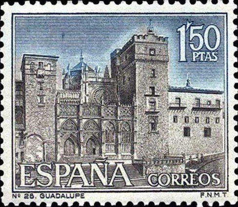 Visibility: public Image owner: none postage 1.50p blk&bl dt=tourism (1966 Spain) d=Guadalupe unwmk perf=14 Crops No visible images cropped from this one. Measurements Resolution is unknown. Source Source name: Colnect File URL: http://i.colnect.net/b/625/472/Monastery-of-Guadaloupe.jpg Uploaded September 11, 2012, 3:22 am by Stan Shebs |