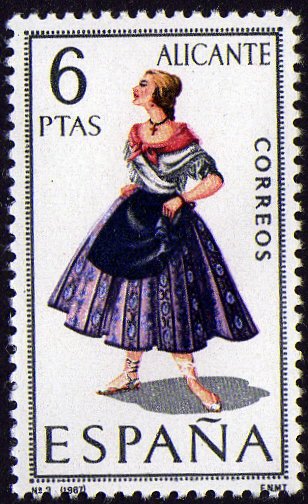 Visibility: public Image owner: none postage 3/9/1967 6p multi issue=Regional Costumes d=woman of Alicante unwmk perf=14 Crops No visible images cropped from this one. Measurements Resolution is unknown. Source Source name: Colnect File URL: http://i.colnect.net/b/431/134/Regional-Costumes---Alicante.jpg Uploaded September 11, 2012, 3:47 am by Stan Shebs |