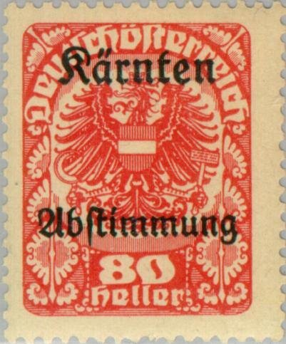 Visibility: public Image owner: none semipostal 9/16/1920 80h rose issue=Carinthia Plebiscite d=arms of Austria (1920 b) ovpt=Kaernten//Abstimmung oc=blk on=issue=1920-80h unwmk perf=12.5 Crops No visible images cropped from this one. Measurements Resolution is unknown. Source Source name: Colnect File URL: http://i.colnect.net/images/b/135/624/Coat-of-arms.jpg Uploaded August 17, 2014, 2:03 pm by Stan Shebs |