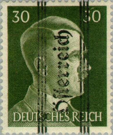 Visibility: public Image owner: none postage 5/22/1945 30(pf) olgrn issue=Styria overprints d=Adolf Hitler (1941) ovpt=bars//Oesterreich//bars oc=blk on=issuer=Germany-1941-30(pf) unwmk perf=14 Crops No visible images cropped from this one. Measurements Resolution is unknown. Source Source name: Colnect File URL: http://i.colnect.net/b/136/025/Overprint-German-stamp-Hitler.jpg Uploaded August 17, 2014, 2:30 pm by Stan Shebs |