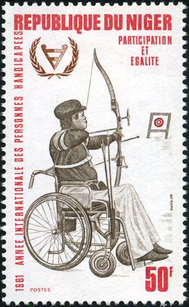 Visibility: public Image owner: none postage 4/24/1981 50fr multi issue=International Year of the Disabled d=one-armed archer unwmk perf=13 Crops No visible images cropped from this one. Measurements Resolution is unknown. Source Source name: Colnect File URL: http://i.colnect.net/b/994/967/International-Year-of-Disabled-Persons.jpg Uploaded August 17, 2014, 3:19 pm by Stan Shebs |