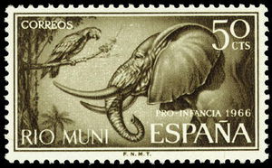 Visibility: public Image owner: none postage 6/1/1966 50c issue=child welfare 1966 d=elephant & parrot Crops No visible images cropped from this one. Measurements Resolution is unknown. Source Source name: Colnect (old) File URL: http://i.colnect.net/images/f/303/811/Elephant-and-parrot.jpg Page URL: http://colnect.com/en/stamps/stamp/112501-Elephant_and_parrot-Child_Welfare-Rio_Muni Gallery URL: http://colnect.com/en/stamps/list/page/1/year/1966/country/4248-Rio_Muni Uploaded September 13, 2012, 5:46 am by Stan Shebs |