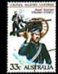 Visibility: public Image owner: none postage 2/25/1985 33c multi dt=colonial military uniforms d=Royal Victorian Volunteer Artillery unwmk perf=14.5x14.25 Crops No visible images cropped from this one. Measurements Resolution is unknown. Source Source name: Colnect (old) File URL: http://i.colnect.net/images/f/469/582/Victorian-Voluntary.jpg Uploaded September 15, 2012, 12:38 pm by Stan Shebs |