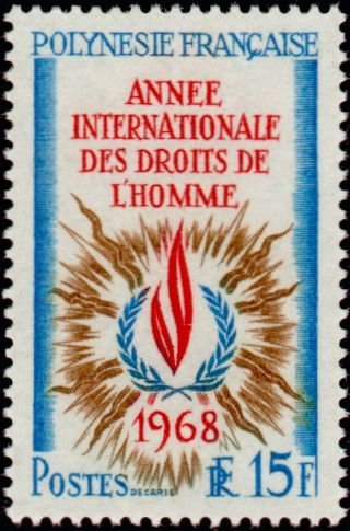 Visibility: public Image owner: none postage 8/10/1968 15fr multi issue=Human Rights Year unwmk perf=13 Crops No visible images cropped from this one. Measurements Resolution is unknown. Source Source name: Colnect File URL: http://i.colnect.net/b/1011/651/International-Year-of-Human-Rights.jpg Uploaded August 17, 2014, 7:03 pm by Stan Shebs |