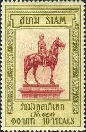 Visibility: public Image owner: none postage 11/11/1908 10t brn&car issue=reign 40th d=statue of King Chulalongkorn unwmk perf=13.5 Crops No visible images cropped from this one. Measurements Resolution is unknown. Source Source name: Colnect File URL: http://i.colnect.net/b/490/337/King-Chulalongkorn.jpg Uploaded August 17, 2014, 7:46 pm by Stan Shebs |