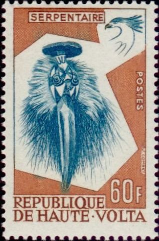 Visibility: public Image owner: none postage 4/11/1960 60fr dt=animal masks d=secretary bird mask unwmk Crops No visible images cropped from this one. Measurements Resolution is unknown. Source Source name: Colnect File URL: http://i.colnect.net/b/507/036/Secretary-Bird.jpg Uploaded August 18, 2014, 2:38 pm by Stan Shebs |