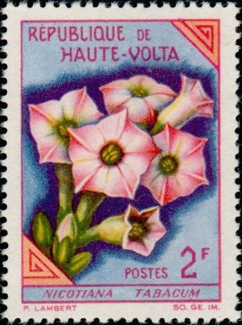 Visibility: public Image owner: none postage 2fr multi issue=1963 dt=flowers (1963 Upper Volta) d=Nicotiana tabacum unwmk Crops No visible images cropped from this one. Measurements Resolution is unknown. Source Source name: Colnect File URL: http://i.colnect.net/b/507/618/Nicotiana-tabacum.jpg Uploaded August 18, 2014, 2:38 pm by Stan Shebs |