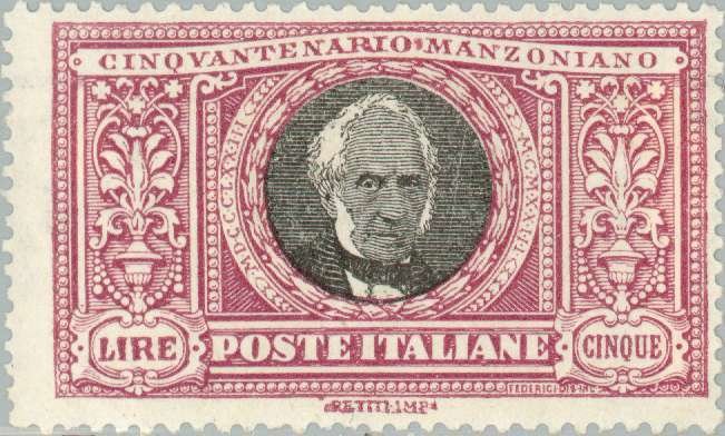 Visibility: public Image owner: none postage 12/29/1923 5l vio&blk issue=Manzoni d=Alessandro Manzoni (1923) wmk=crown (Italy) perf=14 Crops No visible images cropped from this one. Measurements Resolution is unknown. Source Source name: Colnect File URL: http://i.colnect.net/b/166/504/Portrait-of-Alessandro-Manzoni.jpg Uploaded August 18, 2014, 3:29 pm by Stan Shebs |