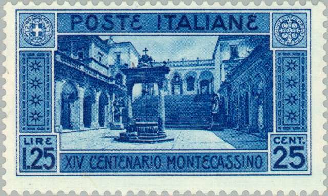 Visibility: public Image owner: none postage 8/1/1929 1.25l+25c bl issue=Monte Cassino 1400th d=Cloister of the Abbey of Monte Cassino wmk=crown (Italy) perf=14 Crops No visible images cropped from this one. Measurements Resolution is unknown. Source Source name: Colnect File URL: http://i.colnect.net/b/167/065/Cloister-of-the-Abbey-of-Monte-Cassino.jpg Uploaded August 18, 2014, 3:34 pm by Stan Shebs |