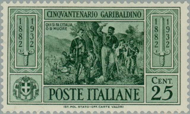 Visibility: public Image owner: none postage 4/6/1932 25c grn issue=Garibaldi death 50th d=Garibaldi with Nino Bixio wmk=crown (Italy) perf=14 Crops No visible images cropped from this one. Measurements Resolution is unknown. Source Source name: Colnect File URL: http://i.colnect.net/b/167/308/Garibaldi-with-Nino-Bixio.jpg Uploaded August 18, 2014, 3:36 pm by Stan Shebs |