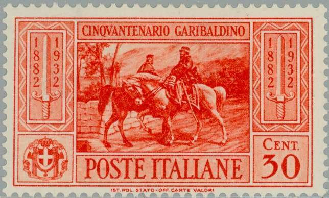 Visibility: public Image owner: none postage 4/6/1932 30c org issue=Garibaldi death 50th d=Meeting Teano between Garibaldi & Vittorio Emanuele II wmk=crown (Italy) perf=14 Crops No visible images cropped from this one. Measurements Resolution is unknown. Source Source name: Colnect File URL: http://i.colnect.net/b/167/309/Meeting-Teano-between-Garibaldi-and-Vittorio-Emanuele-II.jpg Uploaded August 18, 2014, 3:36 pm by Stan Shebs |