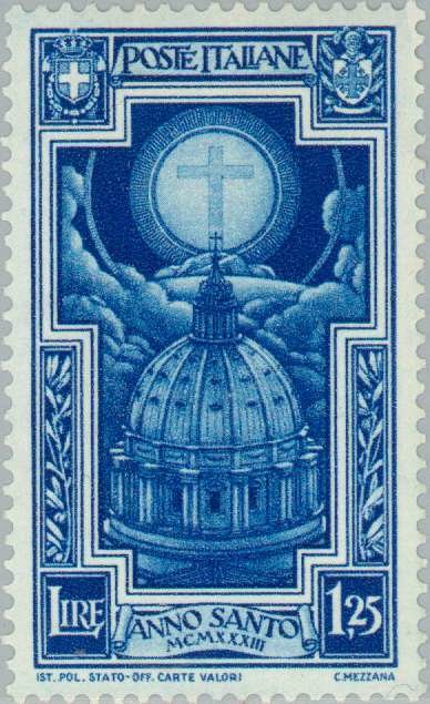 Visibility: public Image owner: none postage 10/23/1933 1.25l issue=Holy Year 1933 d=cross in halo over St. Peters wmk=crown (Italy) perf=14 Crops No visible images cropped from this one. Measurements Resolution is unknown. Source Source name: Colnect File URL: http://i.colnect.net/b/167/395/Dome-of-St-Peter-s.jpg Uploaded August 18, 2014, 3:36 pm by Stan Shebs |