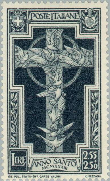 Visibility: public Image owner: none postage 10/23/1933 2.55l+2.50l blk issue=Holy Year 1933 d=Doves around the cross wmk=crown (Italy) perf=14 Crops No visible images cropped from this one. Measurements Resolution is unknown. Source Source name: Colnect File URL: http://i.colnect.net/b/167/396/Doves-around-the-cross.jpg Uploaded August 18, 2014, 3:36 pm by Stan Shebs |