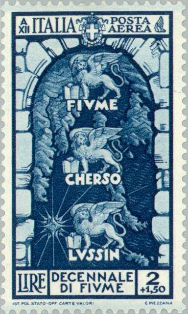 Visibility: public Image owner: none airmail 3/12/1934 2+1.50l bl issue=Fiume annexation 10th wmk=crown (Italy) perf=14 Crops No visible images cropped from this one. Measurements Resolution is unknown. Source Source name: Colnect File URL: http://i.colnect.net/images/b/188/137/Lions-of-Dalmatia-and-the-Dalmatian-islands.jpg Uploaded August 18, 2014, 3:37 pm by Stan Shebs |