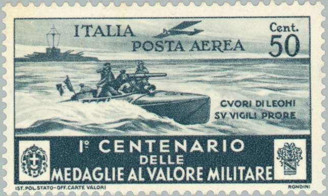 Visibility: public Image owner: none airmail 9/6/1934 50c gray issue=Medal of Valor 100th wmk=crown (Italy) perf=14 Crops No visible images cropped from this one. Measurements Resolution is unknown. Source Source name: Colnect File URL: http://i.colnect.net/images/b/188/150/Mas--quot-hearts-of-lions-prows-of-fighters-quot-.jpg Uploaded August 18, 2014, 3:39 pm by Stan Shebs |