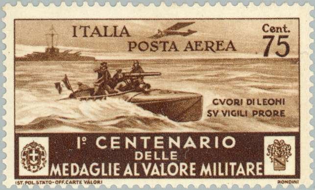 Visibility: public Image owner: none airmail 9/6/1934 75c brn issue=Medal of Valor 100th wmk=crown (Italy) perf=14 Crops No visible images cropped from this one. Measurements Resolution is unknown. Source Source name: Colnect File URL: http://i.colnect.net/images/b/188/151/Mas--quot-hearts-of-lions-prows-of-fighters-quot-.jpg Uploaded August 18, 2014, 3:39 pm by Stan Shebs |