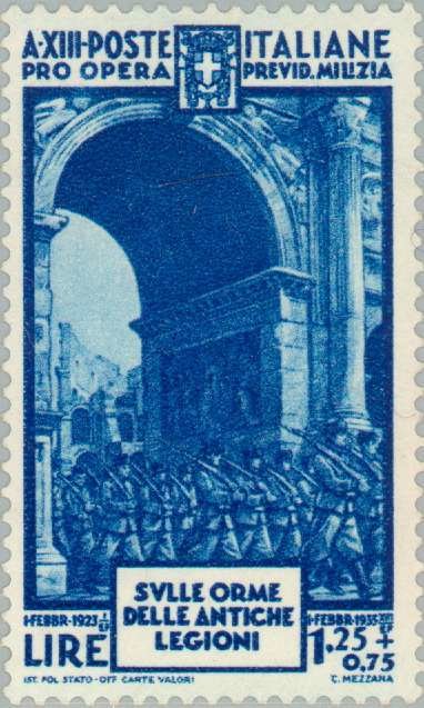 Visibility: public Image owner: none semipostal 7/1/1935 1.25l+0.75c bl issue=National Militia wmk=crown (Italy) perf=14 Crops No visible images cropped from this one. Measurements Resolution is unknown. Source Source name: Colnect File URL: http://i.colnect.net/images/b/167/517/Parade-of-MVSN-under-the-arch-of-Constantine.jpg Uploaded August 18, 2014, 3:39 pm by Stan Shebs |