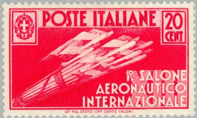 Visibility: public Image owner: none postage 10/1/1935 20c red issue=Aeronautical Salon d=Symbol Fascist aviation wmk=crown (Italy) perf=14 Crops No visible images cropped from this one. Measurements Resolution is unknown. Source Source name: Colnect File URL: http://i.colnect.net/images/b/167/519/Symbol-Fascist-aviation.jpg Uploaded August 18, 2014, 3:39 pm by Stan Shebs |