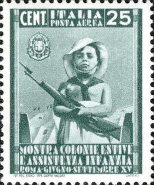 Visibility: public Image owner: none airmail 6/28/1937 25c grn issue=child welfare wmk=crown (Italy) perf=14 Crops No visible images cropped from this one. Measurements Resolution is unknown. Source Source name: Colnect File URL: http://i.colnect.net/b/848/700/Boy-with-gun-in-hand.jpg Uploaded August 18, 2014, 3:51 pm by Stan Shebs |