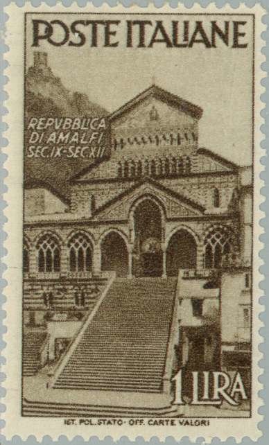 Visibility: public Image owner: none postage 10/30/1946 1l brn issue=proclamation of republic d=Cathedral of Amalfi wmk=winged wheel perf=14 Crops No visible images cropped from this one. Measurements Resolution is unknown. Source Source name: Colnect File URL: http://i.colnect.net/b/168/403/Cathedral-of-Amalfi.jpg Uploaded August 18, 2014, 3:58 pm by Stan Shebs |