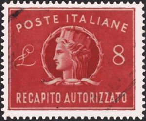 Visibility: public Image owner: none Crops No visible images cropped from this one. Measurements Resolution is unknown. Source Source name: Colnect (old) File URL: http://i.colnect.net/images/f/1210/087/Turreted-Italy.jpg Page URL: https://colnect.com/en/stamps/stamp/307638-Turreted_Italy-Recapito_Autorizzato-Italy Gallery URL: https://colnect.com/en/stamps/list/country/2641-Italy/year/1947/page/9 Uploaded September 20, 2012, 5:32 am by Stan Shebs |