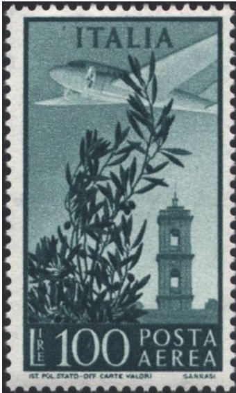 Visibility: public Image owner: none airmail 2/16/1948 100l dkgrn issue=1948 air d=Douglas DC-3 over bell tower wmk=winged wheel perf=14 Crops No visible images cropped from this one. Measurements Resolution is unknown. Source Source name: Colnect File URL: http://i.colnect.net/images/b/1209/688/Aircraft-over-Rome.jpg Uploaded August 18, 2014, 4:05 pm by Stan Shebs |