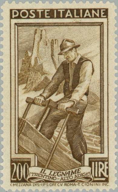 Visibility: public Image owner: none postage 10/20/1950 200l olbrn issue=occupations dt=occupations (1950) d=woodcutter (Trentino-Alto Adige) wmk=winged wheel perf=14 Crops No visible images cropped from this one. Measurements Resolution is unknown. Source Source name: Colnect File URL: http://i.colnect.net/images/b/168/865/Provincial-Occupations--Trentino-Alto-Adige.jpg Uploaded September 20, 2012, 6:16 am by Stan Shebs |