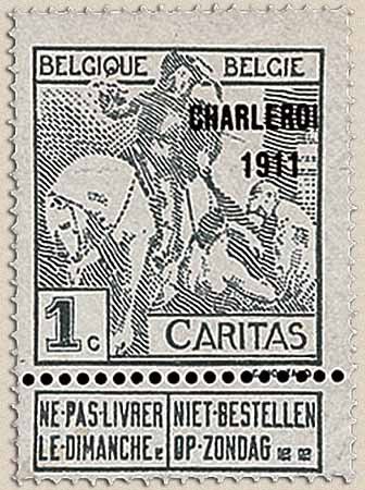 Visibility: public Image owner: none semipostal 6/1911 1c gray issue=Charleroi 1911 d=St Martin dividing cloak (light) ovpt=CHARLEROI-1911 oc=blk on=1910-1c-St Martin dividing cloak (light) unwmk perf=14 Crops No visible images cropped from this one. Measurements Resolution is unknown. Source Source name: Colnect File URL: http://i.colnect.net/images/b/682/963/Caritas-Type-Montald---Charleroi-1911.jpg Uploaded August 18, 2014, 4:43 pm by Stan Shebs |