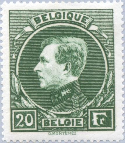 Visibility: public Image owner: none postage 1/25/1929 20fr dkgrn issue=1929b d=King Albert I (1929 Montenez) unwmk Crops No visible images cropped from this one. Measurements Resolution is unknown. Source Source name: Colnect File URL: http://i.colnect.net/b/183/299/King-Albert-I-type--quot-Montenez--.jpg Uploaded August 18, 2014, 5:20 pm by Stan Shebs |