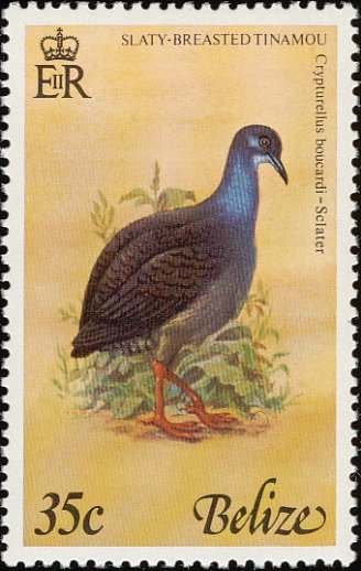 Visibility: public Image owner: none postage 9/3/1977 35c multi issue=Birds of Belize 1977 dt=birds (1977 Belize) d=Crypturellus boucardi wmk=crown & CA spiral perf=14.5 Crops No visible images cropped from this one. Measurements Resolution is unknown. Source Source name: Colnect File URL: http://i.colnect.net/images/b/740/528/Slaty-breasted-Tinamou-Crypturellus-boucardi.jpg Uploaded August 18, 2014, 5:57 pm by Stan Shebs |