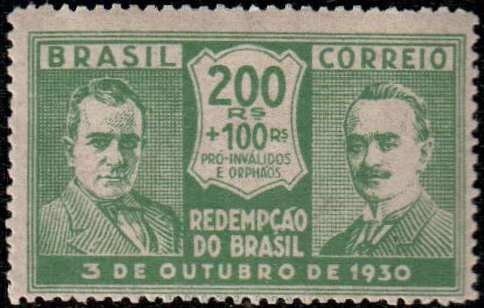 Visibility: public Image owner: none postage 4/29/1931 200+100r grn issue=1930 revolution wmk=CORREIO BRASIL & 5 stars in squared circle Crops No visible images cropped from this one. Measurements Resolution is unknown. Source Source name: Colnect File URL: http://i.colnect.net/b/753/079/Redemption-of-Brazil.jpg Uploaded August 18, 2014, 7:00 pm by Stan Shebs |