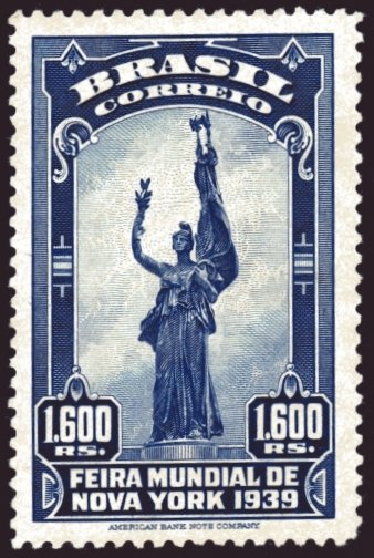 Visibility: public Image owner: none postage 10/7/1939 1600r issue=New York World's Fair d=friendship statue unwmk perf=12 Crops No visible images cropped from this one. Measurements Resolution is unknown. Source Source name: Colnect File URL: http://i.colnect.net/b/1061/561/Friendship-between-Brazil-and-USA.jpg Uploaded August 18, 2014, 7:26 pm by Stan Shebs |