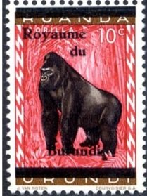 Visibility: public Image owner: none postage 7/1/1962 10c red&multi issue=1962b d=mountain gorilla (1959) ovpt=Royaume//du//Burundi//bar oc=blk on=issuer=RuandaUrundi-issue=animals-10c unwmk Crops No visible images cropped from this one. Measurements Resolution is unknown. Source Source name: Colnect File URL: http://i.colnect.net/b/1177/570/GorillaGorilla-beringei.jpg Uploaded August 18, 2014, 7:55 pm by Stan Shebs |