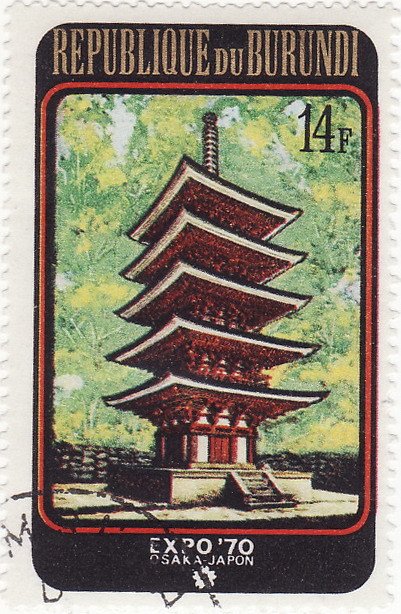 Visibility: public Image owner: none postage 5/5/1970 14fr multi issue=EXPO '70 unwmk Crops No visible images cropped from this one. Measurements Resolution is unknown. Source Source name: Colnect File URL: http://i.colnect.net/images/b/1228/762/Pagoda.jpg Uploaded August 18, 2014, 8:01 pm by Stan Shebs |