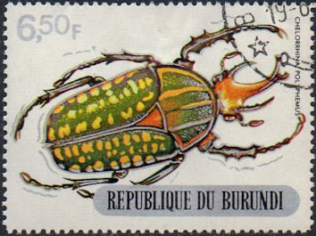 Visibility: public Image owner: none postage 1/20/1970 6.50fr multi issue=beetles 1970 dt=beetles (1970) d=Chelorrhina polyphemus (1970) unwmk Crops No visible images cropped from this one. Measurements Resolution is unknown. Source Source name: Colnect File URL: http://i.colnect.net/b/1010/682/Giant-African-Fruit-Beetle-Chelorrhina-polyphemus.jpg Uploaded August 18, 2014, 8:01 pm by Stan Shebs |